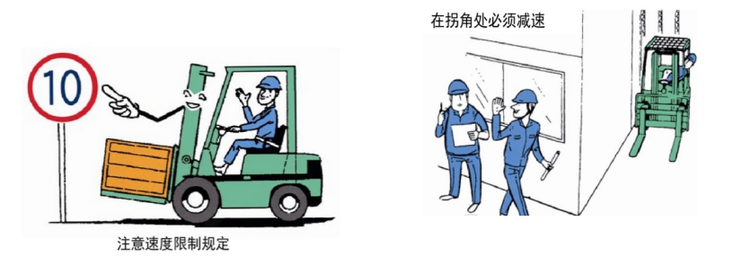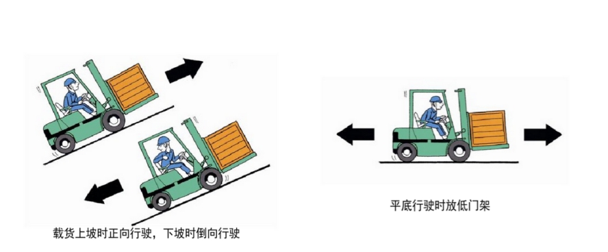 In order to ensure the safe operation of counterbalanced forklift trucks, the following precautions must be strictly observed during driving: