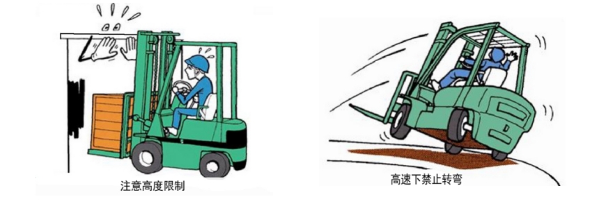 It is forbidden to start, brake, steer or slam the accelerator pedal suddenly, and avoid sudden stop and sudden landing on the shelf.