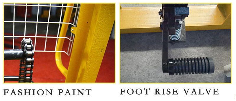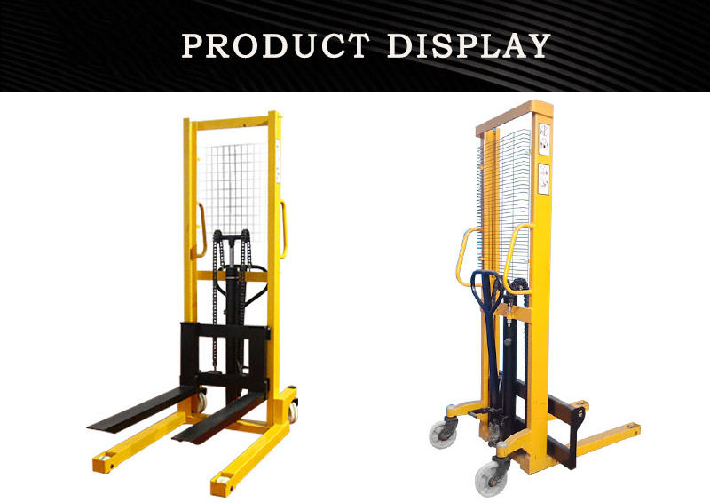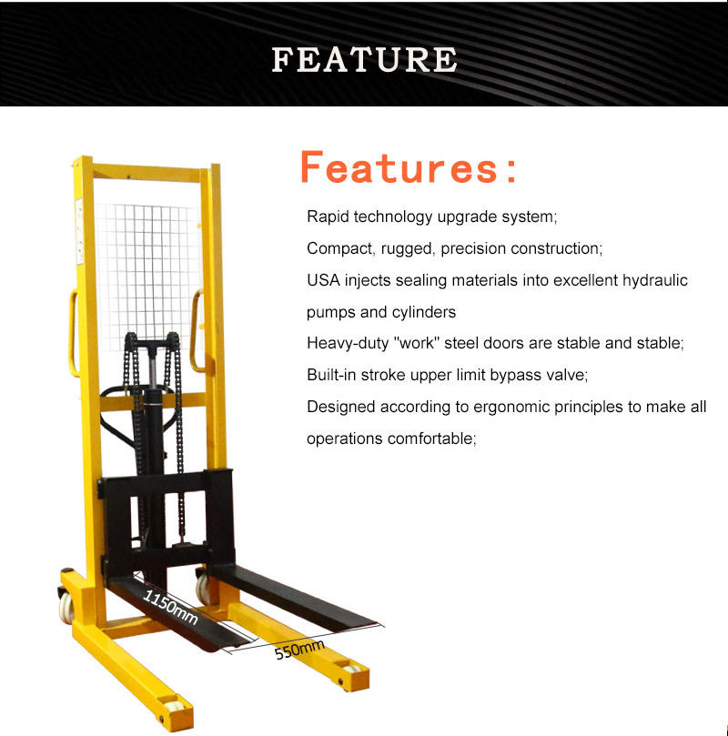 Manual hydraulic stacker uses double lifting chains for a smoother load. Manual hydraulic stacker can adjust the fork and adjust the width of the fork to meet various needs.