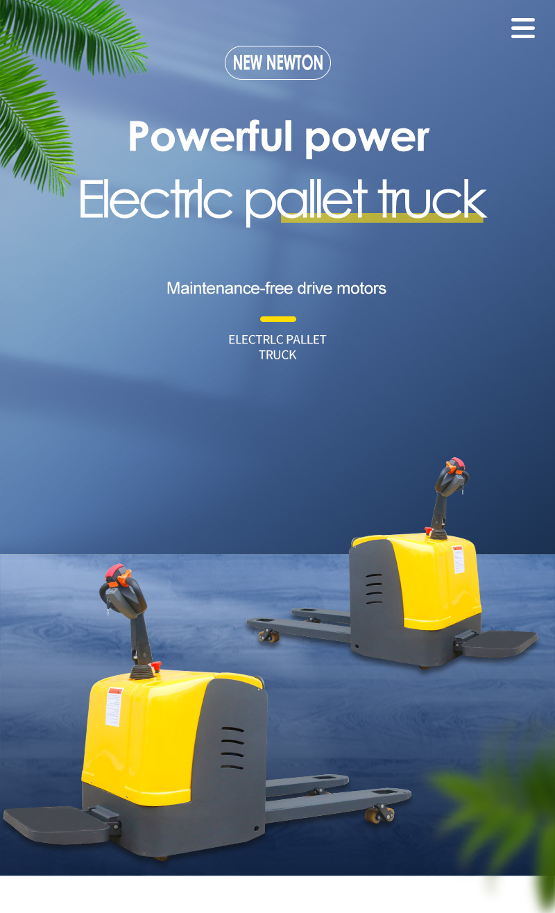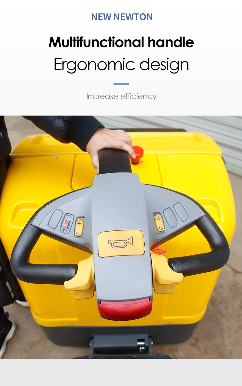 The electric driving handle of the ride on pallet jack is designed with clear functions, 99% fits the ergonomic design, the shock absorber stands the pedal, the operation is comfortable, and the fatigue is 0.Product Specification:
